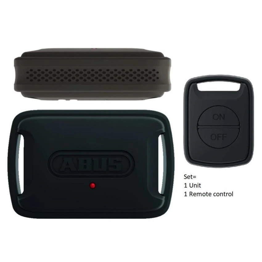 The alarm box RC is an innovative, shock- and motion-sensitive 3D alarm unit for your motorcycle, bicycle, scooter, etc. The Abus Alarmbox line is the perfect addition to your mechanical security. Bicycle, scooter, tools, barbecue – the applications are versatile. The Alarmbox RC is easy to install and can be easily activated and deactivated with a remote control – a real added advantage. With one remote control you can even control several boxes at the same time. The intelligent calibration of the 100 dB loud alarm system will only be fully activated in the event of a persistent attempted theft. In contrast, unintentional knocks and movements will trigger a short 5-second alarm.