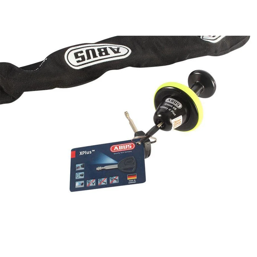 This combination excels with hardened special steel, as well as with the ABUS XPlus tamper-proof locking cylinder. The optimized reach of the barrel gives a lot of freedom when attaching to a fixed object. No wonder this lock has been awarded a security level of 20.
