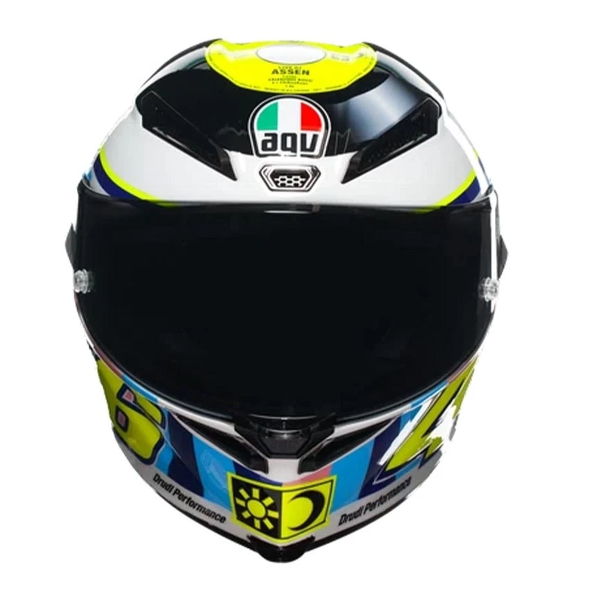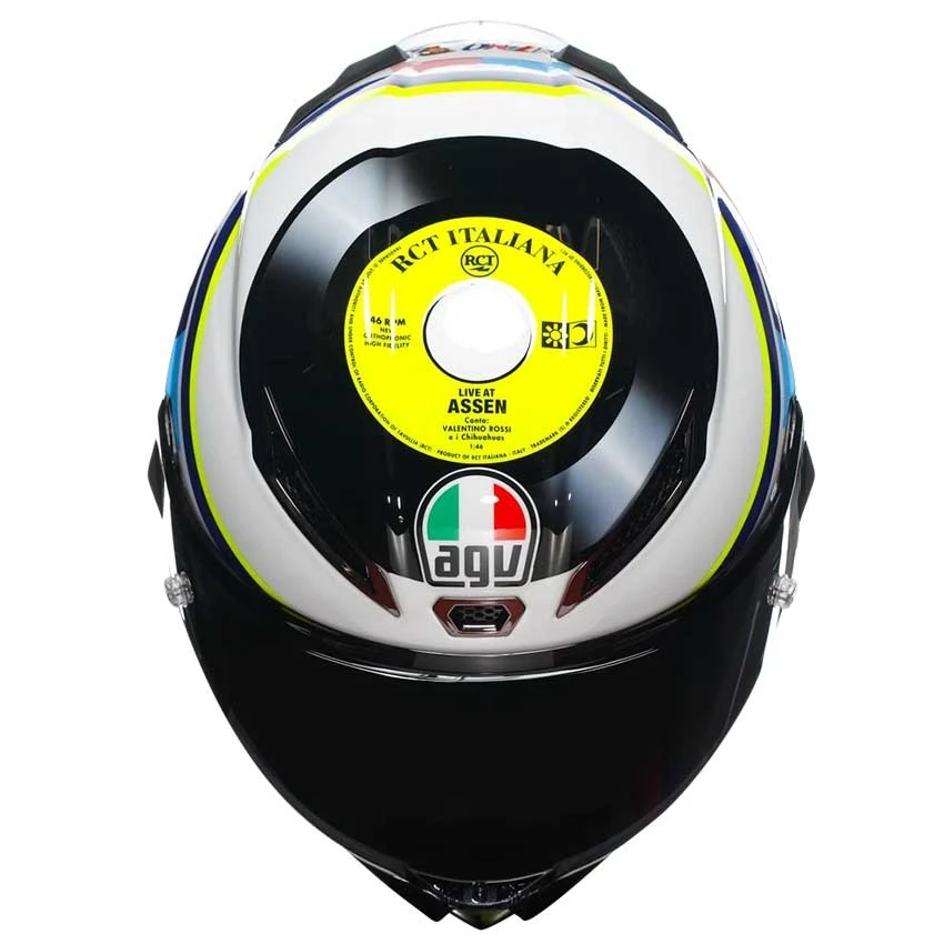 The most advanced racing helmet in the world, in a special edition that brings the future of performance to the present day. The AGV Pista GP RR Assen 2007 combines all the characteristics of the helmet used by MotoGP™ riders with a brand-new shell made of Carbon fibers. The shell, made of carbon guarantees extraordinary lightness, which makes it effortless to wear. Its shapes and metal air vents are studied in the wind tunnel and tested by AGV athletes in order to ensure the best aerodynamic penetration and the greatest stability at high speeds, also due to the innovative profile of the rear PRO Spoiler.