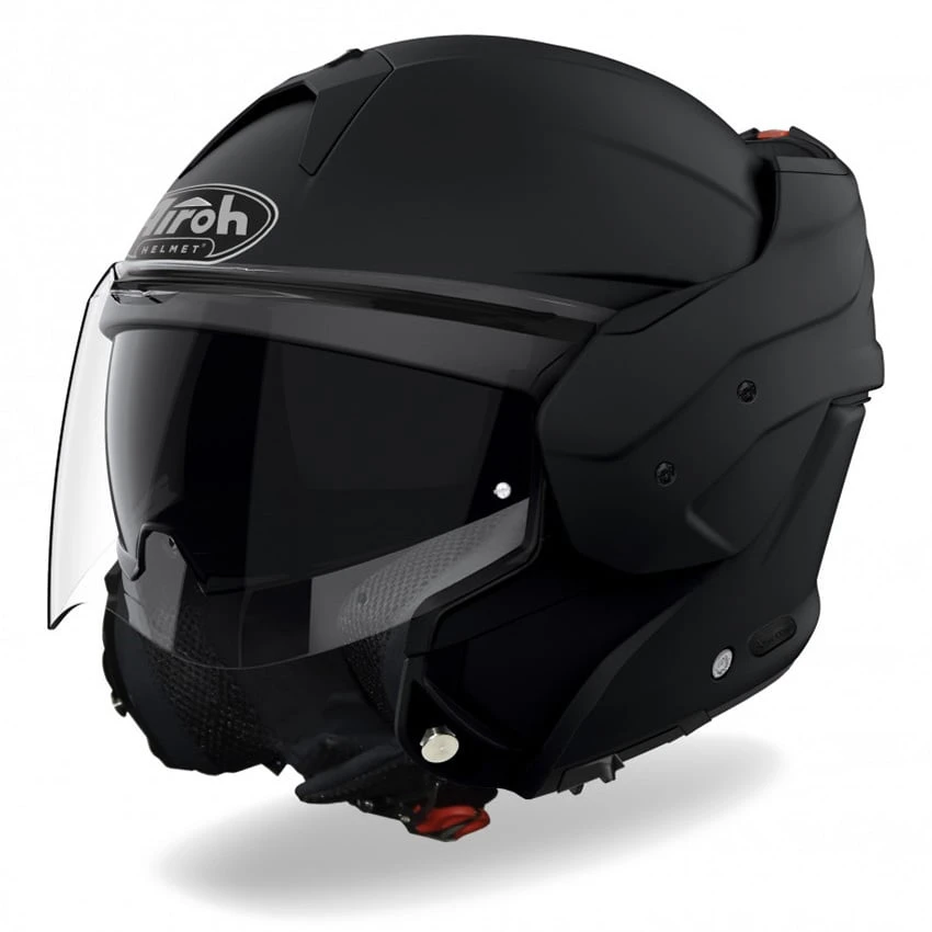 The Airoh Mathisse motorcycle helmet adds to its unique design a top-notch of high tech features. The 180° chin-guard rotation system enhances the versatility of an all-purpose helmet. The HRT (High Resistant Thermoplastic) outer shell has 2 different sizes to ensure a perfect fit, and an over-refined ventilation system provides the best comfort. The double P/J certification, retractable Sun Visor, micrometric retention system, Pinlock and Stop Wind make it the perfect choice to drive you everywhere with class.