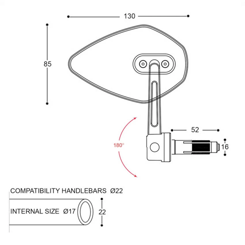 Skin-x bar end mirrors are e-marked and they are part of the high B-lux range. They are in aluminum with a special design signed barracuda, skin-x bar end are part of skin project, they are characterized by an essential design and a hi-tech appearence.