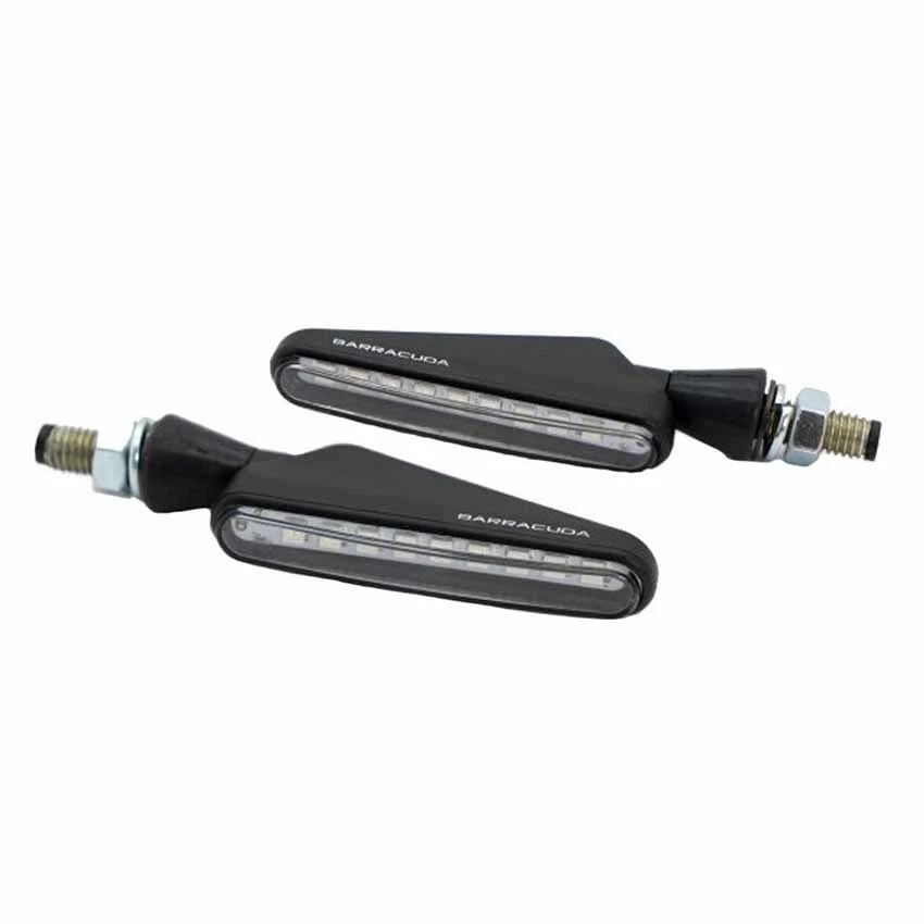 The Barracuda SQB-LED indicators are approved universal direction indicators made entirely of ABS using sequential LED technology. The SQB-LEDs are characterised by simple but refined lines with reduced dimensions. They are made in black color, with clear lens and orange flashing LED. The package includes two indicators.