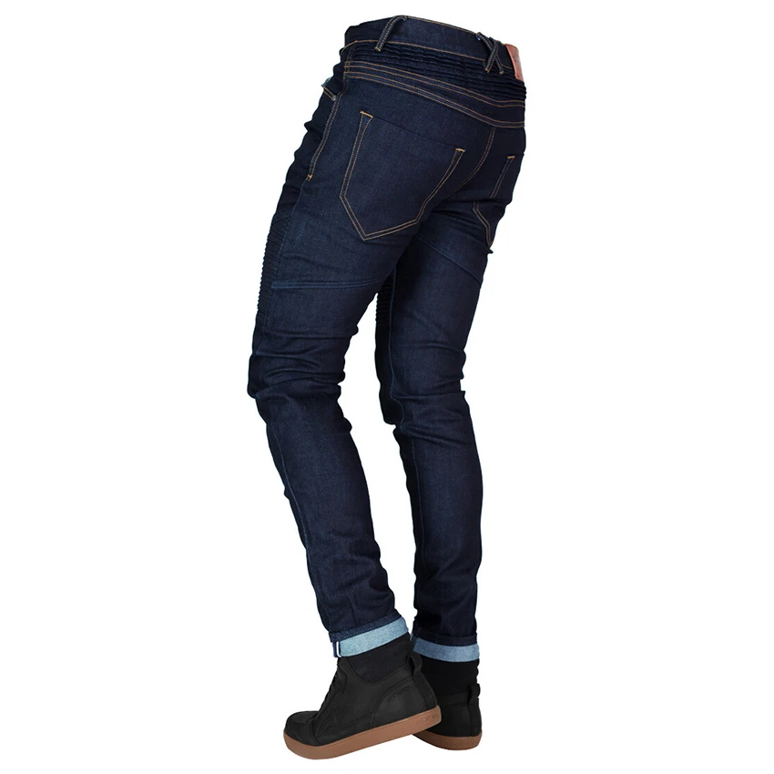 The Bull-it Bobber II Raw is a single-layer denim motorcycle pants. 4-way stretch and AA abrasion resistance throughout the jeans construction for unrivalled comfort. Standard 5-pocket jeans style with stretch panels on the thighs and waist, and a skinny fit. Level 2 protectors on the knees and hips are included.