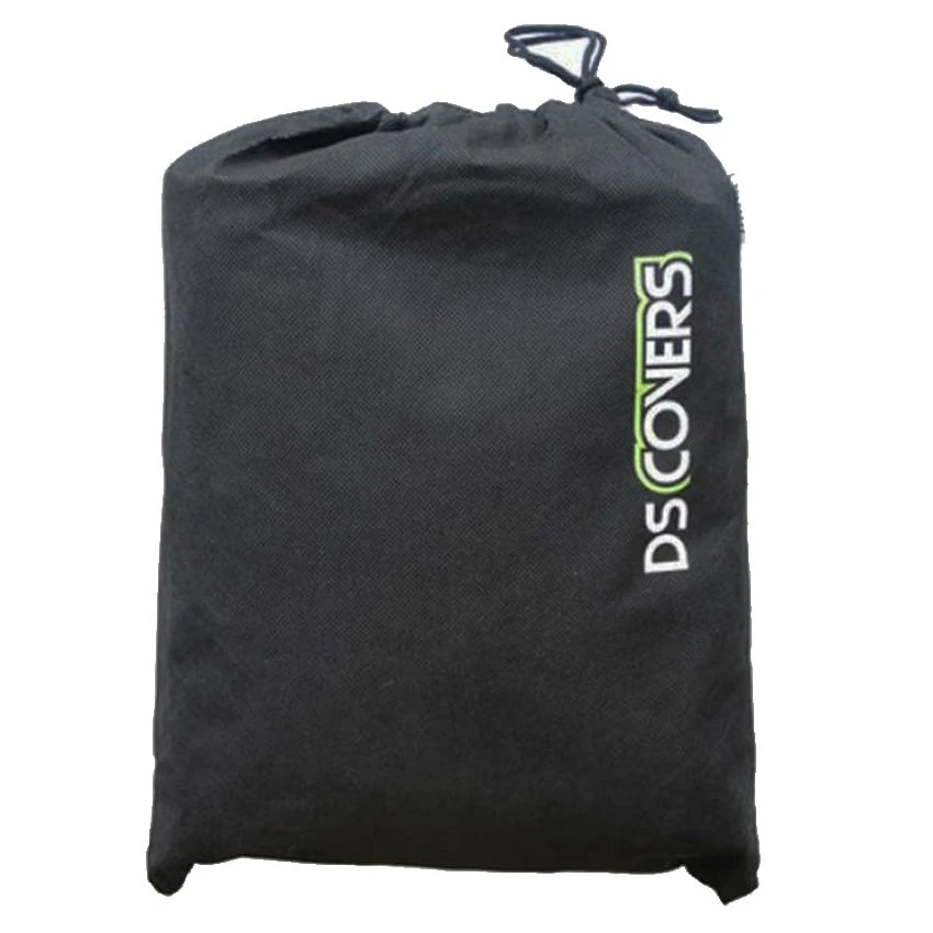 The high-quality ALFA motorcycle cover is the showpiece of DS Covers. The material of the cover is durable 300D polyester and therefore ideal for intensive and long-term use. On the inside, the protective cover is lined with a soft cotton lining so that the cover does not scratch the paint of the motorcycle in slightly stronger wind, for example. Inside, the cover at the exhaust positions is provided with heat-resistant panels so that the cover can be quickly placed over the motorcycle after riding. These panels are heat resistant up to 300° C.