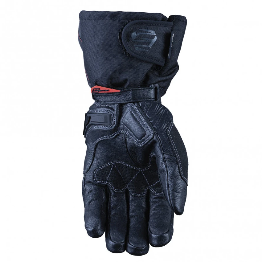 The Five gloves WFX Tech GTX is a winter motorcycle glove that is focused on fit and steering precision for the road and suburban riding. The top side is constructed from a mmix of neoprene, nylon and leather. Leather palm with digital pittards reinforcement for improved durability and optimum grip in wet weather. The WFX Tech also includes a Gore-Tex® weatherproof, breathable membrane and a Thinsulate™ 200 g lining for thermal insulation. A reflective strip on the outer edge so you can be seen at night. Its PU protective knuckle shells are duplicated for improved comfort. A Touch Screen™ system to handle Touch Screen™s without removing your gloves. The WFX Tech goretex offers the very best to help you face the winter.