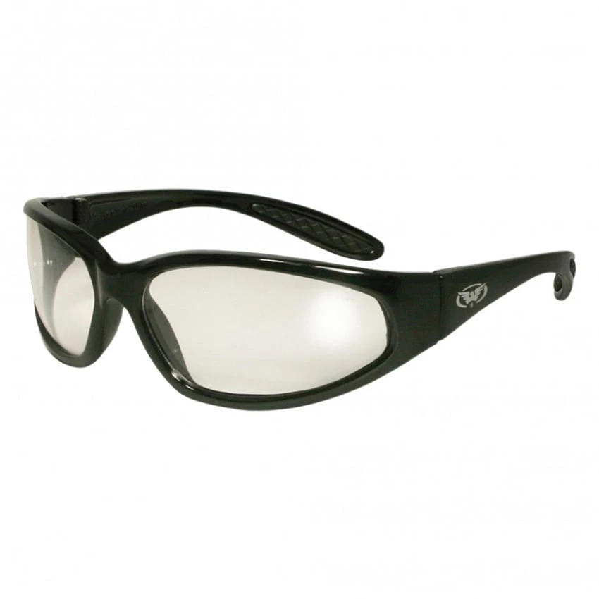 Glossy black frame of practically unbreakable nylon with break-proof polycarbonate lenses and anti-scratch coating. UV400 filter. Glasses are approved according to ANSI Z87.1 standard for use in industrial spaces.