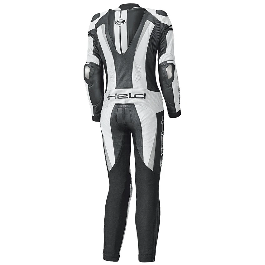 The Held Ayana II ladies motorcycle suit is made of soft cowhide with perforated leather inserts. Optimal comfort due to stretch inserts in the back, on the shoulder and above the knee. Also, the cuffs made of stretch material. The front zipper can also be used as an air vent.