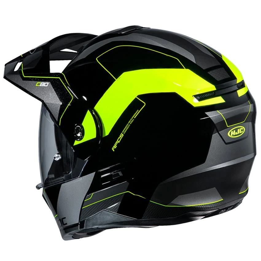 The HJC C80 Rox Dual Sport Modular motorcycle helmet is designed for both street and off-road riding. The outer shell is made from HJC’s engineered advanced Polycarbonate. This material is strong, but also lightweight and with a superior fit and comfort thanks to CAD technology. Which makes the C80 Rox into a very attractive flip-up helmet with superior fit and comfort.