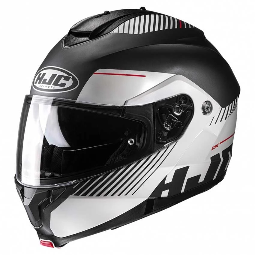 The HJC C91 Prod helmet offers some of the best features on the market for a budget-friendly price. The helmet shell is made of advanced polycarbonate composite, resulting in a lightweight helmet with superior fit and comfort thanks to CAD technology. The chin bar is easy to operate, even with gloves on. The manual mechanism for the integrated sun visor is also easy to operate. Large top vent allows ventilation through the helmet’s deep EPS channels, keeping you cool on rides. The SuperCool inner lining is anti-bacterial and has moisture-wicking properties. The C91 Prod modular helmet is prepared for the HJC 10B or 20B bluetooth systems (sold separately).