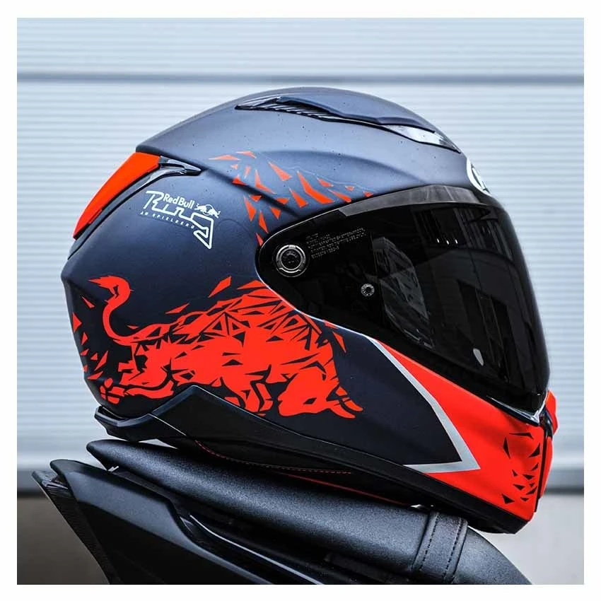 The HJC F70 Red Bull Ring has an Advanced Fiberglass Composite Shell. The F70 has an HJ-32 visor, this visor is anti-scratch and pinlock prepared and comes with an additional anti-fog lens. The integrated HJ-V9 sun visor runs across the whole width of the visor and therefore provides a wider vision. F70 motorcycle helmet has Advanced Channeling Ventilation System (ACS): Full front-to-back airflow that flushes heat and humidity up and out. The Supercool lining is removable, washable and antibacterial. The F70 motorcycle helmet is prepared for the Smart HJC Bluetooth system.