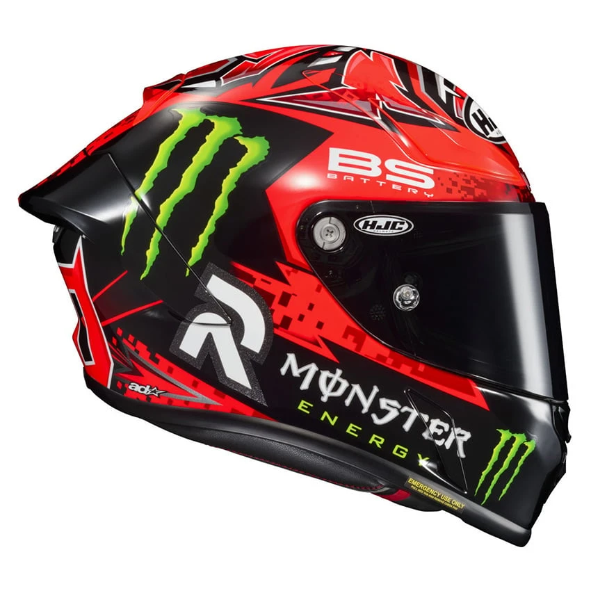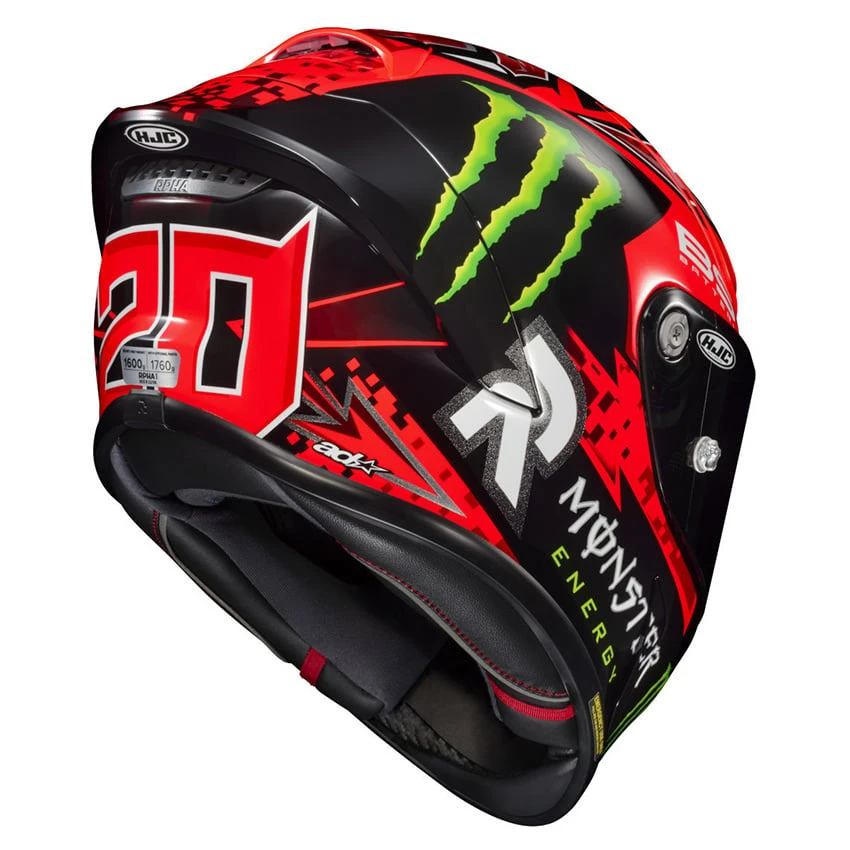 The shell is constructed of HJC’s proprietary Premium Integrated Matrix Plus material to provide enhanced Shock-Resistant performance for a more comfortable and lighter helmet. The RPHA 1 Fabio Quartararo replica is fully certified according to the ECE 22.06 standard and FIM Racing homologated. Equipped with the Pinlock ready Clear HJ-35 visor. The anti-fog Pinlock 120 lens is included din the box. There you will also find an extra transparent racing spoiler perfect for on te circuit.