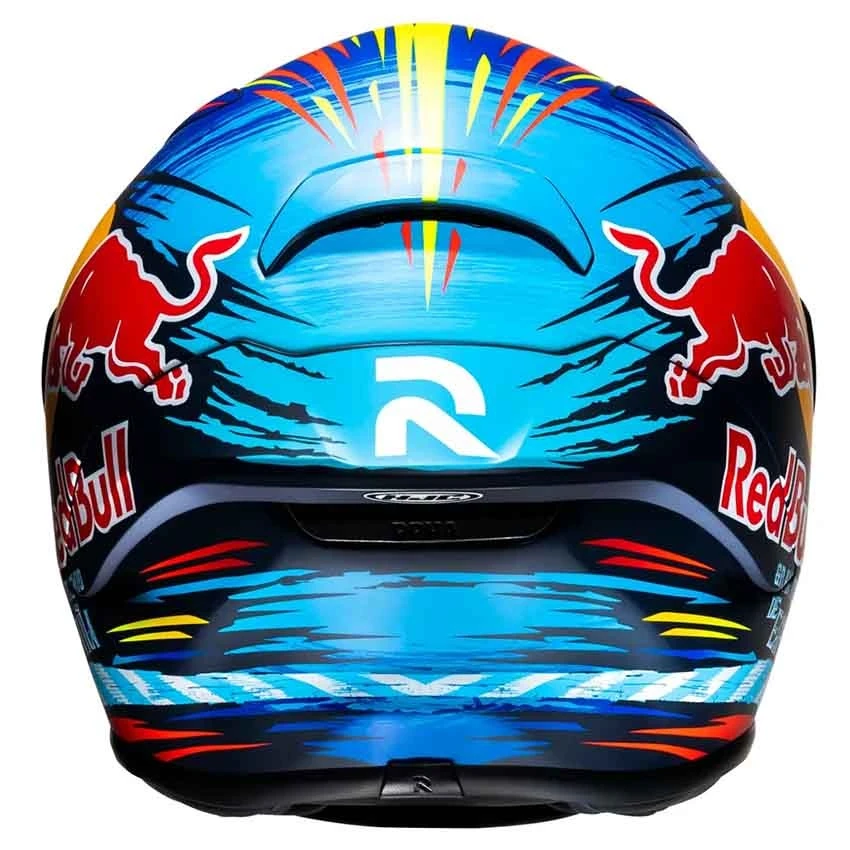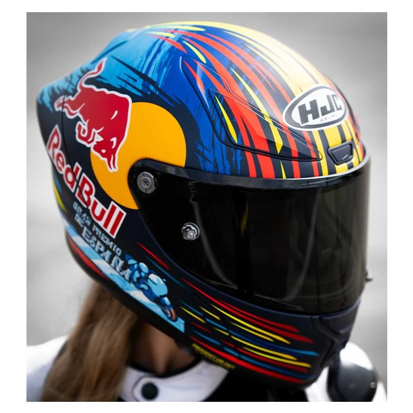 The HJC RPHA 1 Marvel Jerez Red Bull helmet comes with all the modern features you’d expect in a top-of-the-line full-face helmet. This racing helmet is designed and developed after several years of focused efforts and crucial feedback from top world class athletes in MotoGP. The shell is constructed of HJC’s proprietary Premium Integrated Matrix Plus material to provide enhanced Shock-Resistant performance for a more comfortable and lighter helmet. The RPHA 1 Marvel Jerez Red Bull is fully certified according to the ECE 22.06 standard and FIM Racing homologated. Equipped with the Pinlock ready Clear HJ-35 visor. The anti-fog Pinlock 120 lens is included din the box. There you will also find an extra transparent racing spoiler perfect for on te circuit.