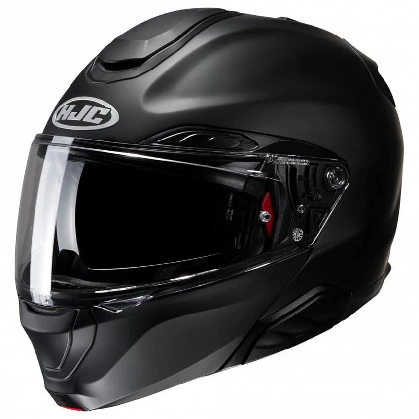 The HJC RPHA 91 flip-up helmet was engineered for all-day comfort. The new Premium Integrated Matrix EVO shell (P.I.M. EVO) provides enhanced shock-resistant performance and is lightweight by using reinforcement materials that include carbon-aramid, carbon fiber, glass fiber, organic non-woven fabric, and linen fiber (natural fiber).