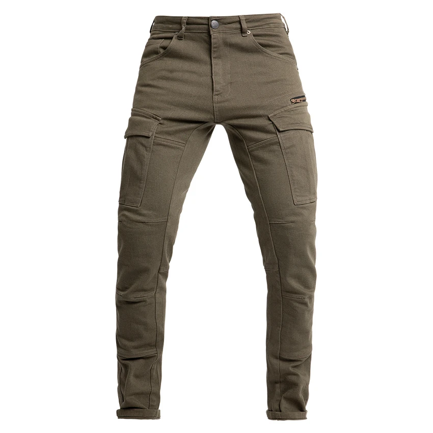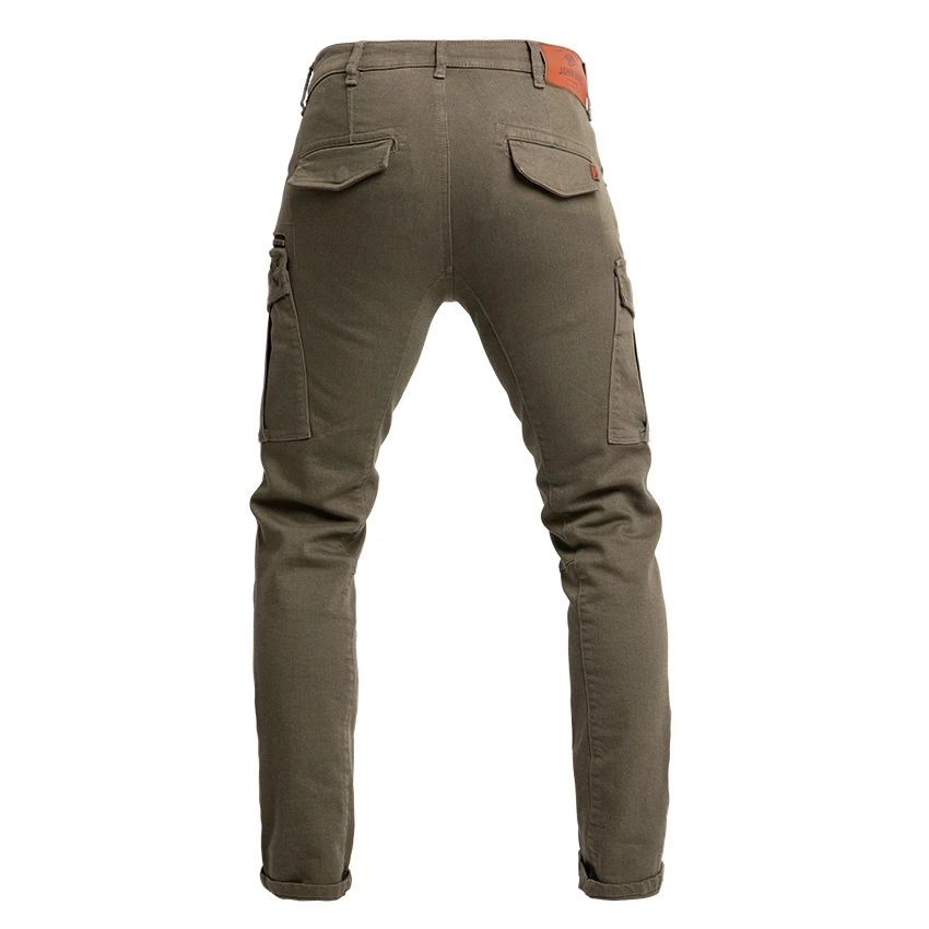 The John Doe Defender Mono Olive is a single layer AAA certified cargo style motorcycle pants. Made from an XTM-Fiber® and stretch denim twill blend, including level 1 protectors on the knees and hips. The Single layer construction provides a cool and comfortable wearing experience on hot days. In addition to the standard front and back pockets that you find with normal jeans, the Defender also has classic cargo pockets and an additional YKK zippered pocket to give you enough space to keep all the things you need for your travels.