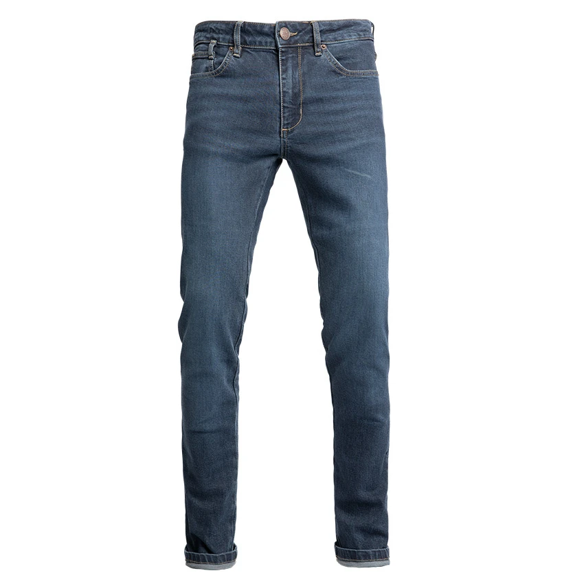 The John Doe Dylan Mono are AAA-certified motorcycle jeans with a single layer design. Made from an XTM-Fiber® and stretch denim twill blend. In combination with the knee and hip protectors, these motorcycle pants protect you against everything you might encounter on the road. Details such as eyelets to attach gloves or a pouch for small change or keys and stretch fabric gives you an extremely comfortable wearing experience.