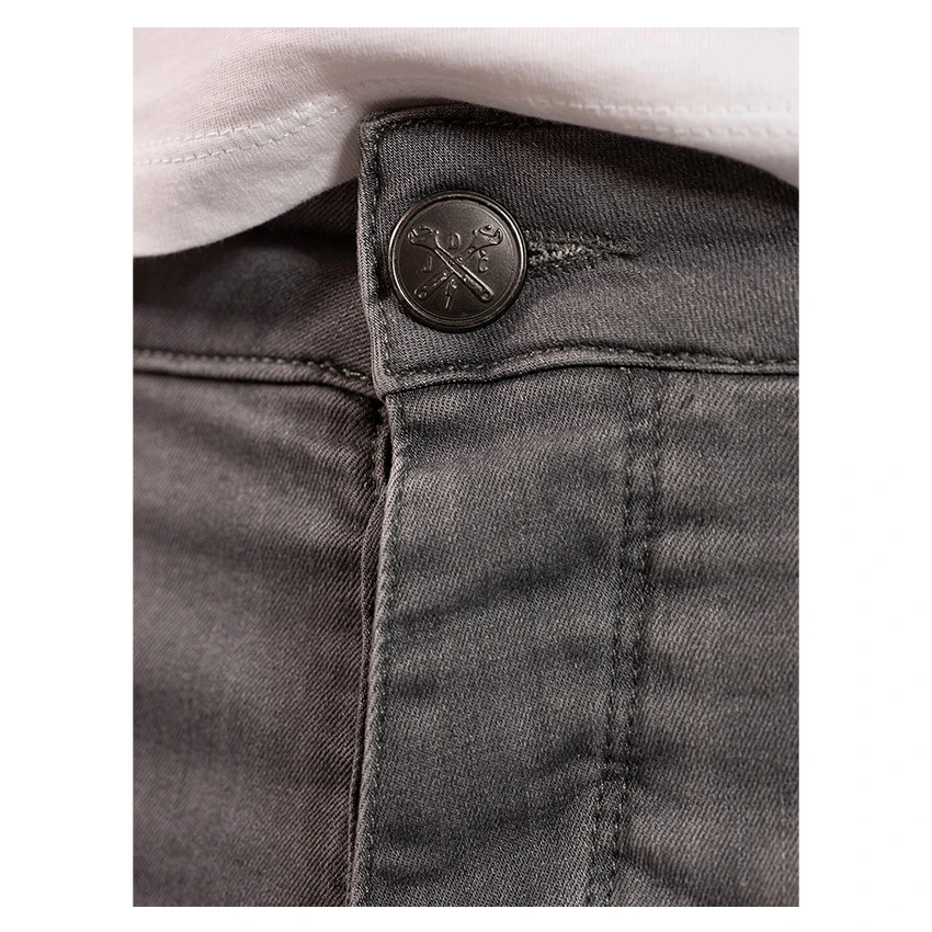 John Doe Ironhead Mechanix Used Light Grey with XTM-Fiber motorcycle jeans. The XTM-Fiber® lining is many times as strong as any metal and will keep you safe in any situation thanks to the added knee and hip protectors. Ironhead Jeans XTM® give you a slim-fit five-pocket-style pair of jeans with AA certification. The stretch denim twill outer fabric offers a lot of comfort and a great fit.