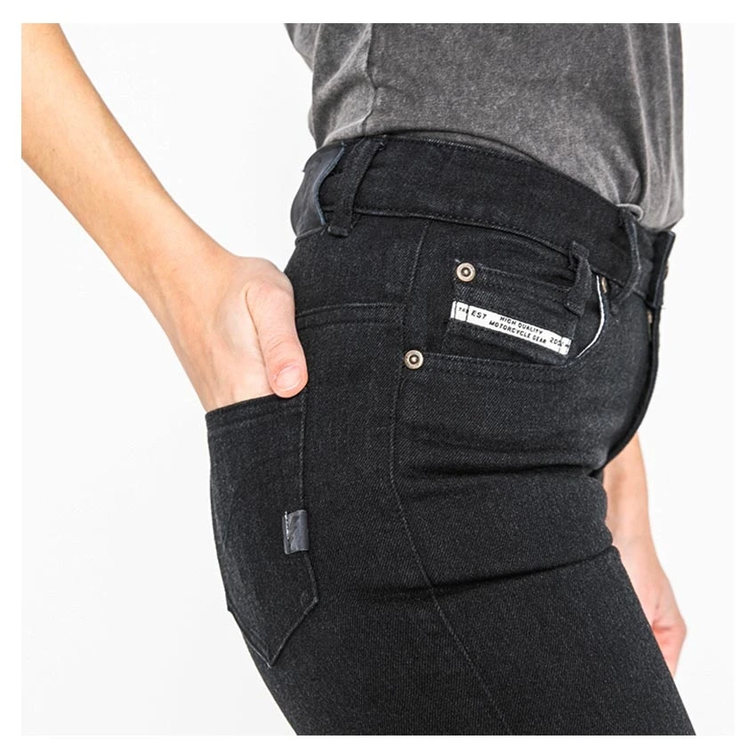 The John Doe Jane High single layer slim fit jeans combines XTM-Fiber® with denim outer fabric in a specialised weaving process. The CE AAA-certified high-waist five-pocket jeans design will give you adequate protection in any situation with its knee and hip protectors. The stretch fabric will also give you an extremely comfortable wearing experience.