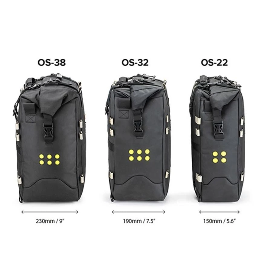 The OS 32 serves as the basic bag for the OS series and is equipped with 16 fixing points to accommodate all underlying OS bags and to be mounted on every conceivable luggage rack. The bag can be mounted directly over the saddle by using optionally available OS-Straps or via mounting on the OS platform which in turn must be mounted on a 3/4 or 18mm luggage rack. Security lead-through for cable lock to secure your bag to your motorcycle. Handy reinforced carrying handle when you have removed the bag from your motorcycle. Fluorescent details for extra visibility.