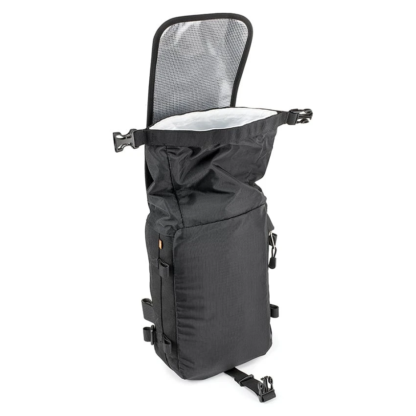 - The 100% waterproof main body has 8 litre capacity with roll-top fastening.