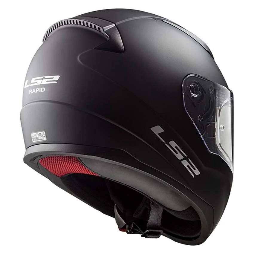 The LS2 Rapid motorbike helmet has the right compromise between an affordable full-face helmet, simple design, high quality. The Rapid helmet is cast in HPPT, a blend of ABS that provides safety at a weight of about 1300grams. The clear Class A visor is pinlock prepared. The comfort padding is hypoallergenic and breathable, and uses a neck roll design to seal well. The LS2 Rapid helmet is perfect for everyday city riding and comfortable for medium-distance rides.