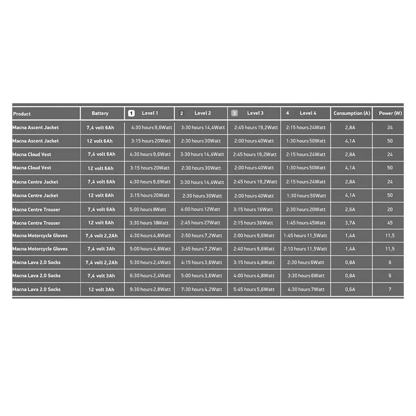 Like most of Macna electrically heated products, the Era glove contains the Dual Power technology. This enables you to choose between a 7,4 Volt battery, which can be tucked away in the cuff and will last up to 4:30 hours, or a 12 Volt connection directly to your motorcycle.