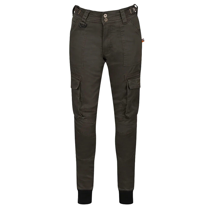 The MotoGirl Lara Cargo is constructed from cotton Twill and Spandex outer layer. The inner layer made from aramid fibers offers abrasion resistance and backed with Polyester mesh inside to feel great against the skin. CE Level 2 knee and hip protection is included, the knee protectors are height-adjustable with Velcro for a better fit.