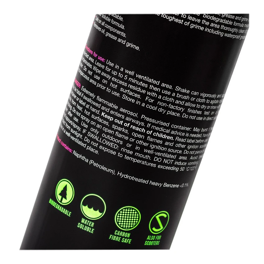 The organic Degreaser is fast and safe. The degreaser easily removes oil, grease and dirt on metal, plastic, rubber and seals. Thanks to the water-soluble formula you can clean the motorcycle parts. The water-soluble formula of this degreaser works even on stubborn dirt, waterproof grease and chain spray.