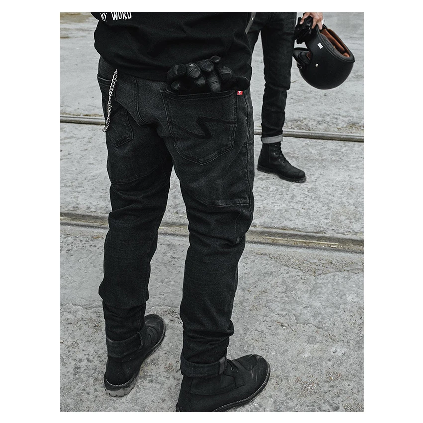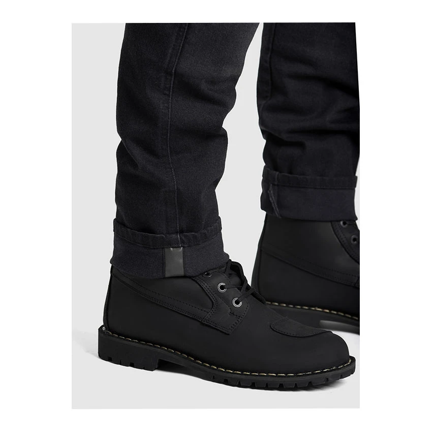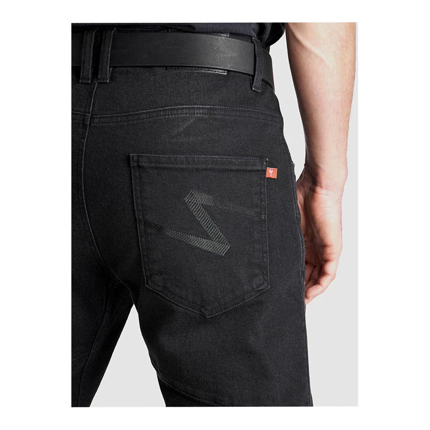 Better than best! The Pando Moto Boss Dyn 01 motorcycle jeans. Extremely durable 12 oz super-stretch CORDURA® denim combined with COOLMAX® technology ensures full comfort and maximal protection. In addition, the protective knit UHMWPE lining provides optimal safety in high-risk impact areas. Standard equipped with protectors on the knees and hips for even more impact protection. The design with no external stitches on the front give these slim fit motorcycle jeans a smooth look.