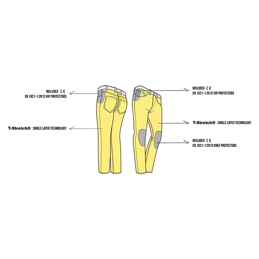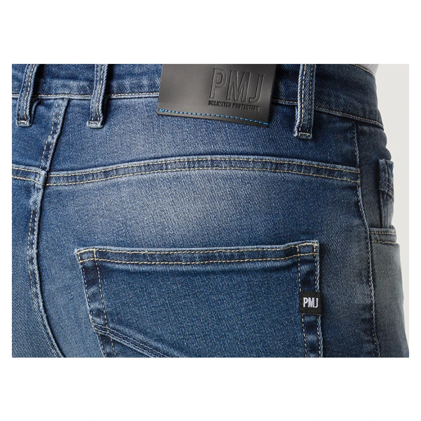 The PMJ Street is an abrasion-resistant motorcycle jean with protectors on the knees and optionally on the hips. Slim fit and a great stonewash look. Great in detail, appearance and comfort. Made of Stretch Twaron®, an innovative fiber with very high protection. Guarantees high resistance to heat, to cutting, no melting point and very low flammability.