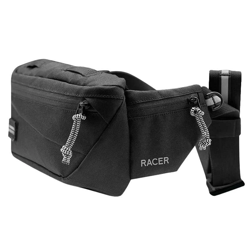 Keep your hands free with this must-have waist bag from Racer. The Bridge has a magnetic buckle making it easy to detach. An easy-access pocket holds all your essentials and two small side pockets complete the fanny pack. You can also attach The Bridge to your bike or other handlebars, the extra-large straps ensure it stays securely attached to your handlebars.