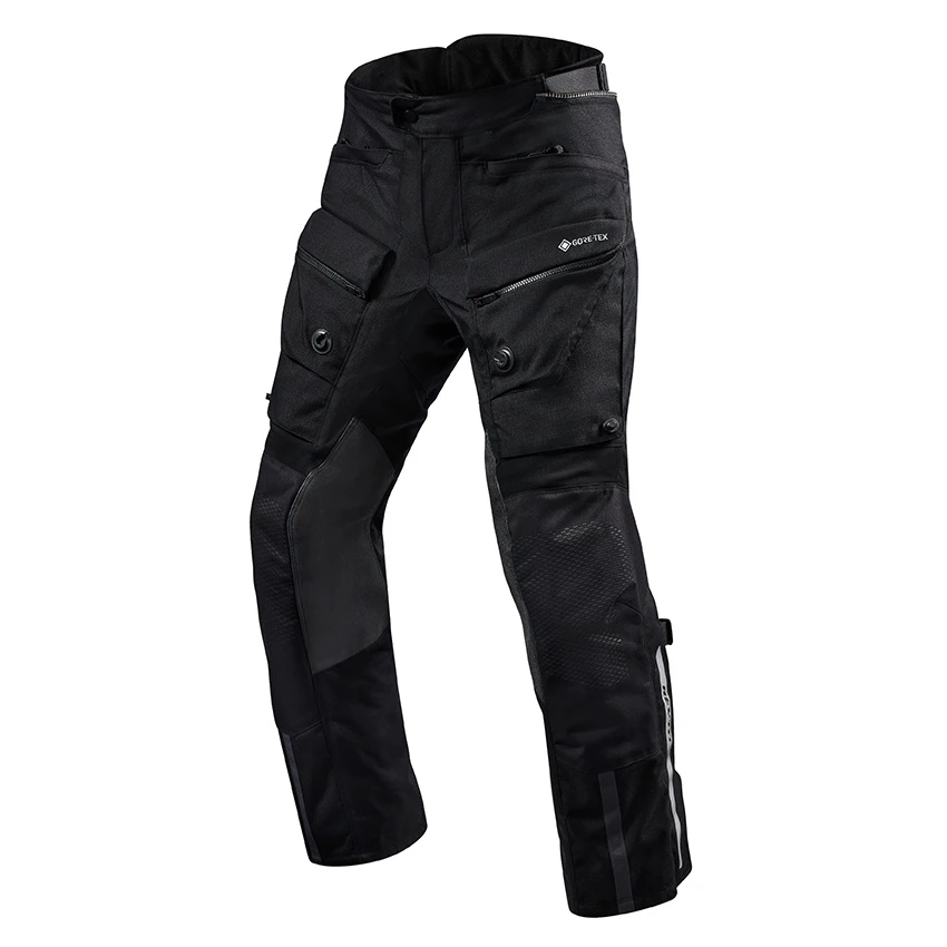 Detachable Gore-Tex liner, detachable thermal liner and various ventilation panels and zippers, the Revit Defender 3 GTX motorcycle trousers offers it all. The outer shell is equipped with stretch inserts above the knee and under the waist to increase freedom of movement during active riding on or off the road. When the temperature starts to rise while riding, easily open the VCS|Ventilation panels on the upper legs and secure them using the magnetic Fidlock® closure. By opening all the vents you will create a steady airflow to keep your upper legs cool and comfortable. Under the rugged outer shell constructed of ripstop material Revit has added Seesmart CE-level 1 hip protectors and Seeflex CE-Level 2 knee protectors. To further increase the abrasion resistance a protective multi-layer print is added on the high impact areas around the knees.