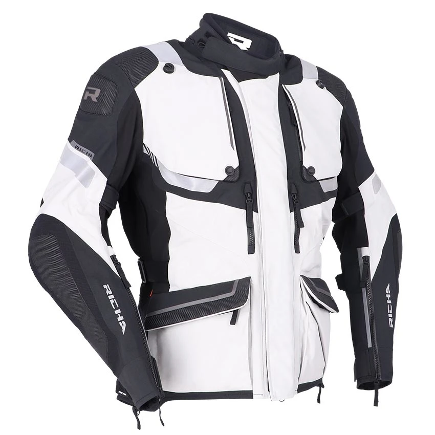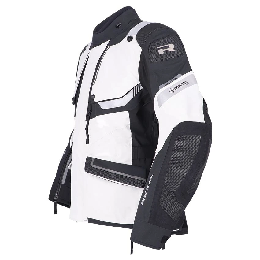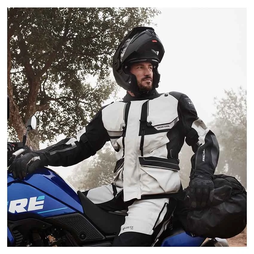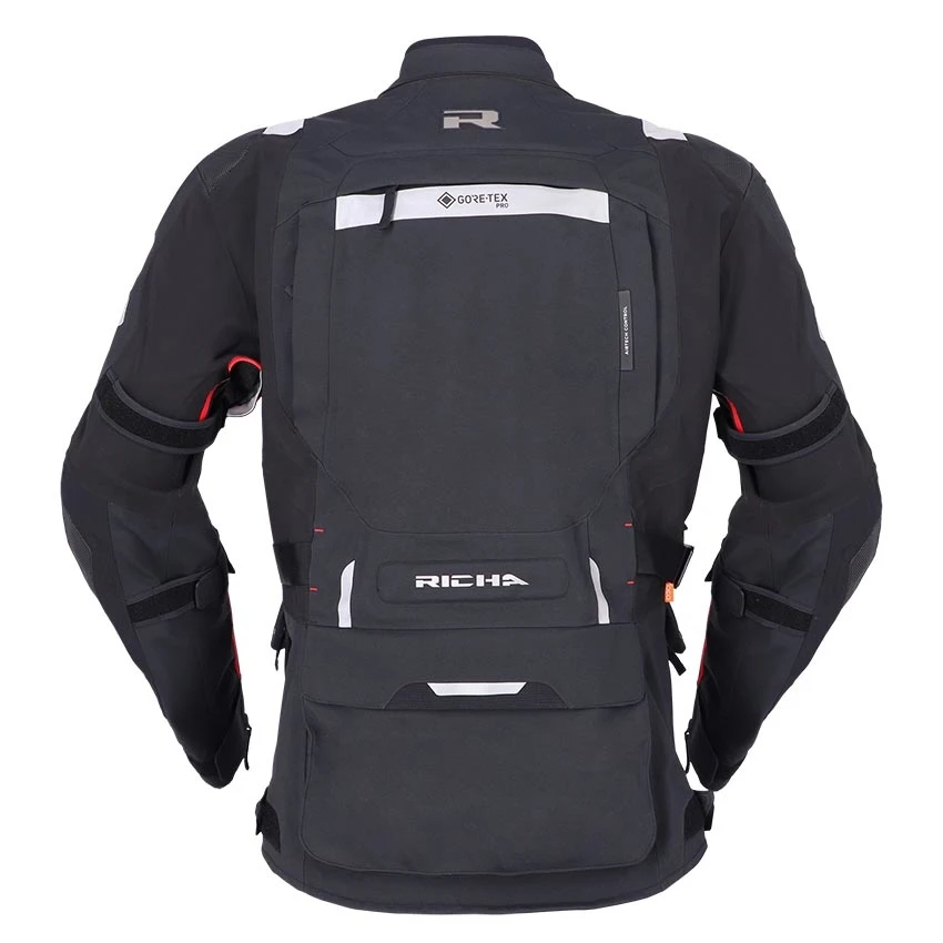 The Richa Armada GTX Pro motorcycle jacket offers everything you need, from ventilation to gore-tex waterproofing and protection, for carefree touring on your motorcycle. Made from abrasion resistant Superfabric material, 3L GORE-TEX Pro reinforced Armacor fabric and mesh panels. The Armada GTX Pro is of course completely waterproof and with a high breathability thanks to the 3L Gore-Tex laminate. In warmer climates you can use the ventilation zippers and panels for refreshing airflow cooling down the body. Supplied as standard with D3O protectors on the shoulders and elbows. For enhanced comfort, the Armada GTX Pro motorcycle jacket has a storm flap behind the zipper, stretch panels, connection zipper and adjustable straps at the waist and hip for a good fit.