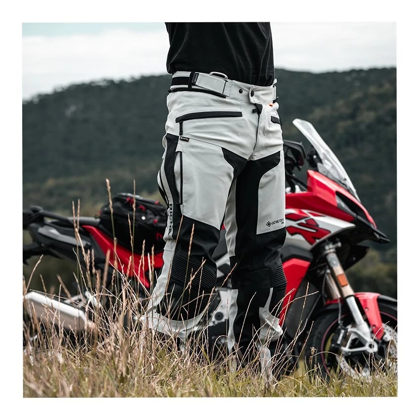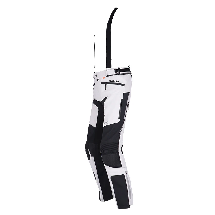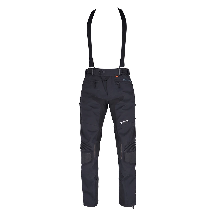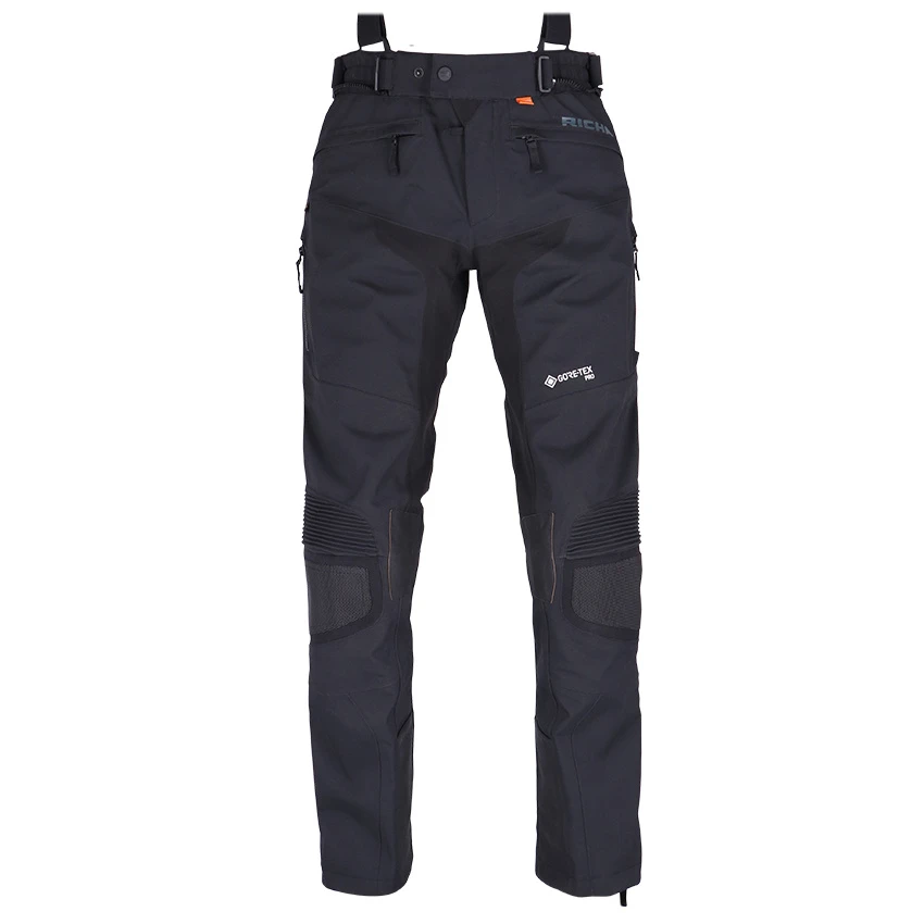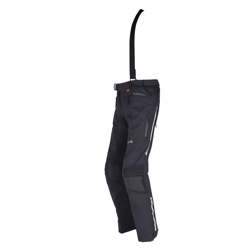 The Richa Armada GTX Pro motorcycle trousers offer everything you need for carefree rides on the motorcycle, from ventilation to gore-tex waterproofing and protection. Made from abrasion-resistant Superfabric material, 3L GORE-TEX Pro reinforced Armacor fabric and strategically placed leather patches for extra heat protection. The Armada GTX Pro is of course completely waterproof and with a high breathability thanks to the 3L Gore-Tex laminate. In warmer weather you can use the ventilation zippers for refreshing airflow for cooling down the body. Supplied as standard with D3O protectors on the knees and hips. For improved comfort, the Armada GTX Pro motorcycle pants incorporates stretch panels, a storm flap, connection zipper and removable suspenders.