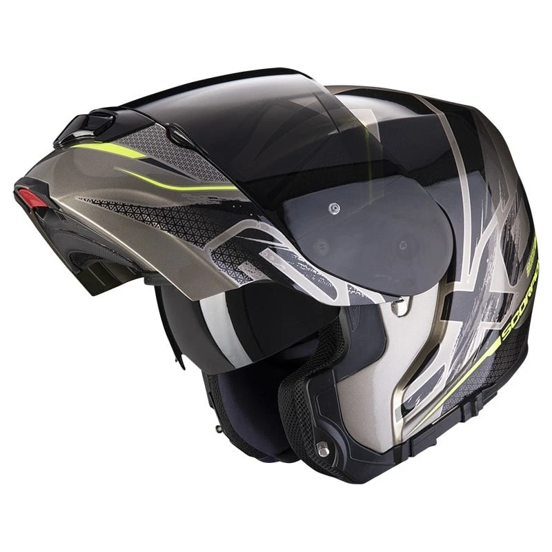 The built-in sun visor is very easy to operate. The Scorpion EXO-3000 meets the highest ECE22.05 approval. As standard, Scorpion supplies a MAX vision pinlock (anti-fog layer) free with the EXO-3000 Air that ensures that fogging of the visor is prevented. The EXO-3000 is prepared for Bleutooth. With the fast micro buckle closure you can easily put the helmet on and off. The kwikwick3 inner lining is extremely comfortable and works extra moisture-regulating, so that perspiration evaporates extra quickly. The mercury fit system gives glasses wearers the opportunity to wear the glasses in a space saved for this. The inner lining is easily removable and can be washed at 30 degrees in the supplied helmet cover.