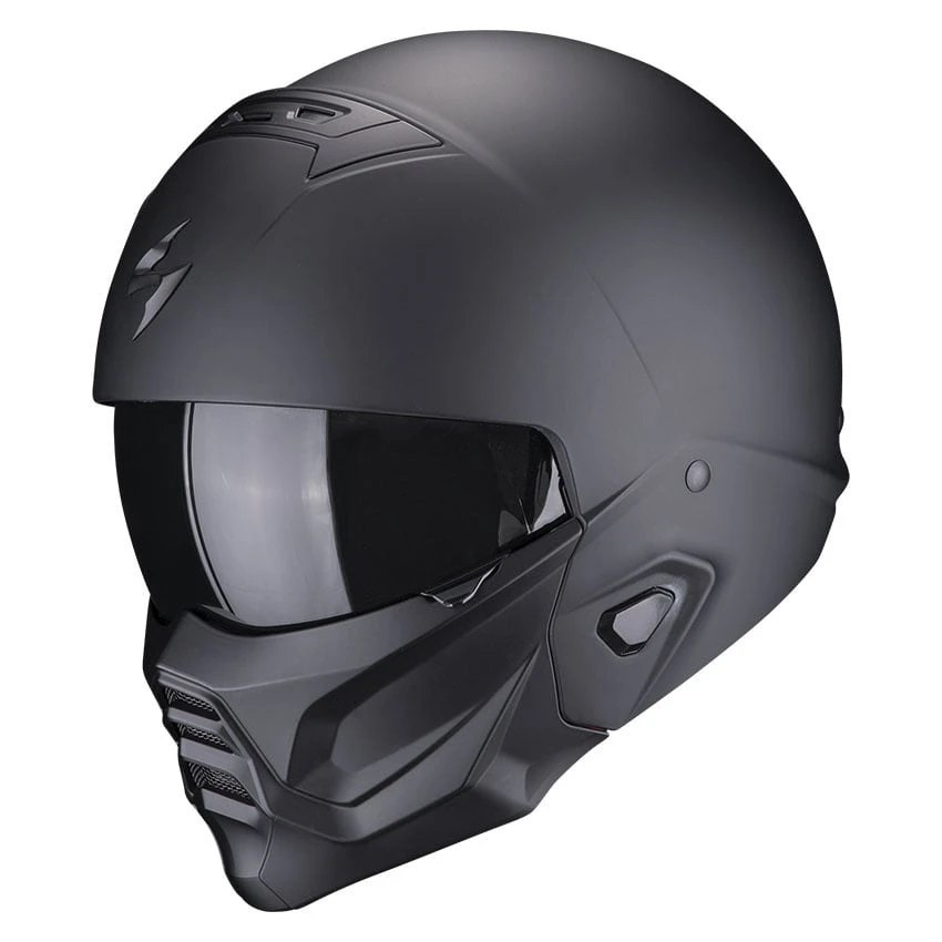 Scorpion’s Exo-Combat 2 Solid is a rugged ECE 22-06 approved helmet. By taking off the chin piece, you have a open-face helmet. Made of a polycarbonate helmet shell and EPS inner shell. With lockable ventilation opening on top of the helmet, and equipped with a Speedwiew sun visor. The chin piece is modified from its predecessor and removable. The interior is made of KwikWick anti-microbial fabric and feels comfortable. The lining is easily removable and washable. Thanks to the micrometric buckle closure, the Exo-Combat II helmet can be put on and off quickly.