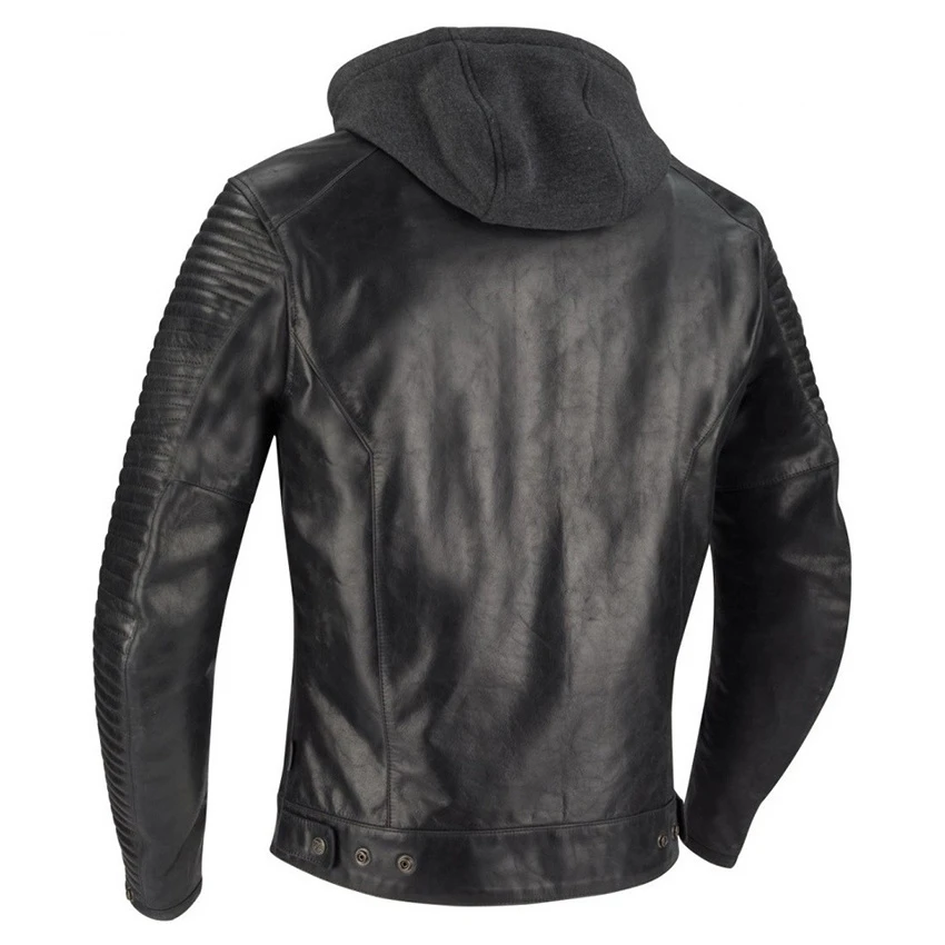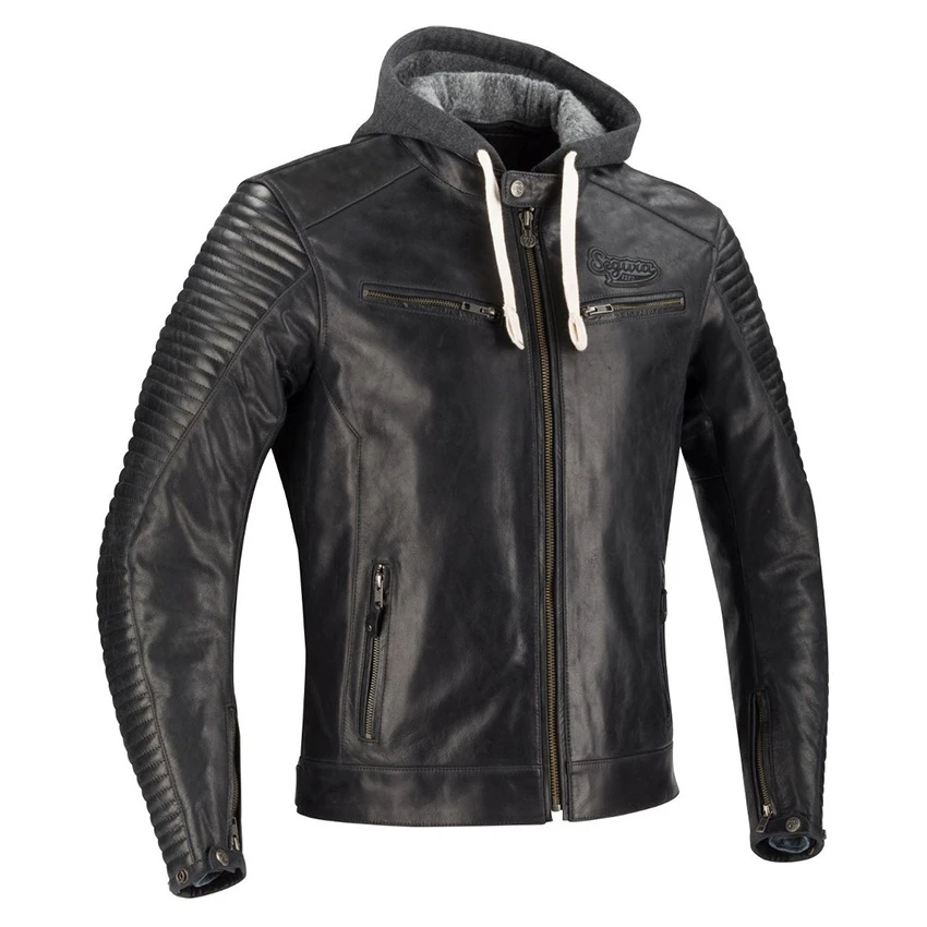 Timeless leather motorcycle jacket with a retro look and feel. The Segura Dorian is equipped with a detachable 90g removable thermal liner, perfect for when the temperatures start to drop. Fully made of smooth buffalo leather which feels soft, flexible and is comfortable to wear. The removable hood and horizontal stitching creating a padded effect on the sleeves contributes tot he streetwear/urban look. The Segura Dorian jacket is standard equipped with protectors on the elbows and shoulders, and with the option to add an back protector insert With four outer pockets and 2 inner pockets plus a wallet pocket there are plenty storage options.