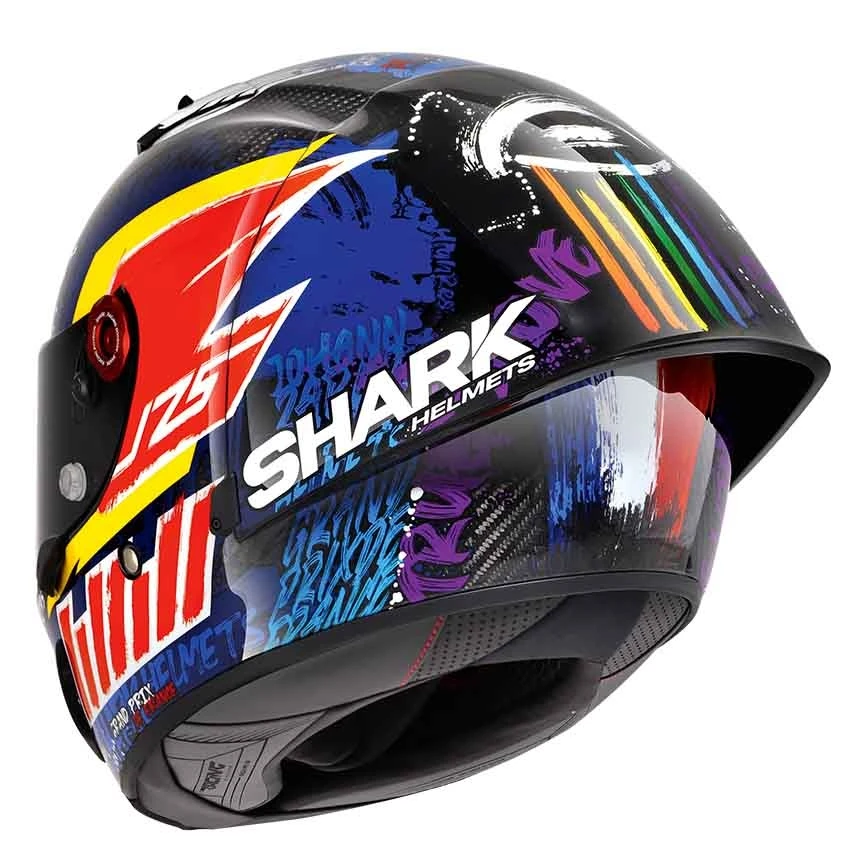 The Shark Race-R PRO GP 06 Replica Zarco Chakra exceeds the stringent requirements of the new UN ECE 22-06 standard.The Race-R Pro GP 06 Replica has an exceptional and historic high-performance build. A unique combination of carbon and aramid associated with multi-density EPS for exceptional performance and shock absorption without equivalence on the market. Incomparable optical quality thanks to its optical class 1 visor with variable thickness that eliminates any possible visual distortion, whatever the viewing angle. Second skin racing interior for support and comfort. Its exceptional fit guarantees unwavering support and stability during your high-speed rides out on the track.