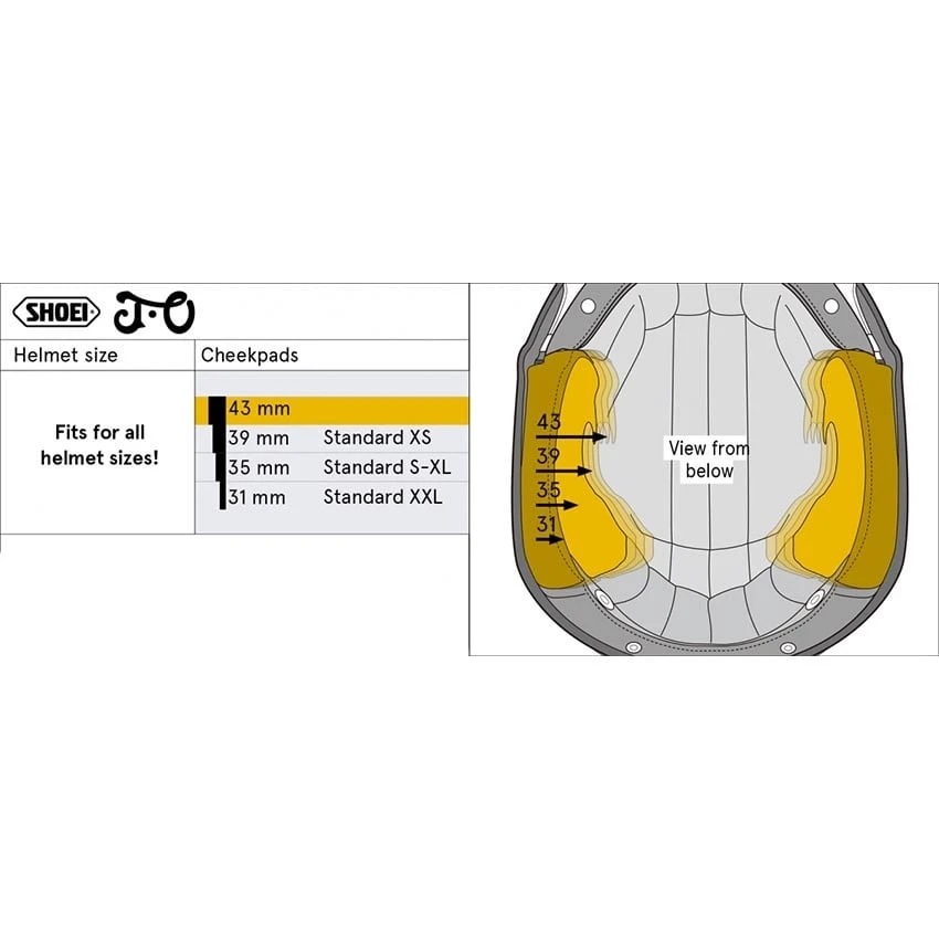 The size of the original cheek pad can be found on the back of the pad. Set with 2 pads (left/right). Suitable for the Shoei J.O motorcycle helmet.