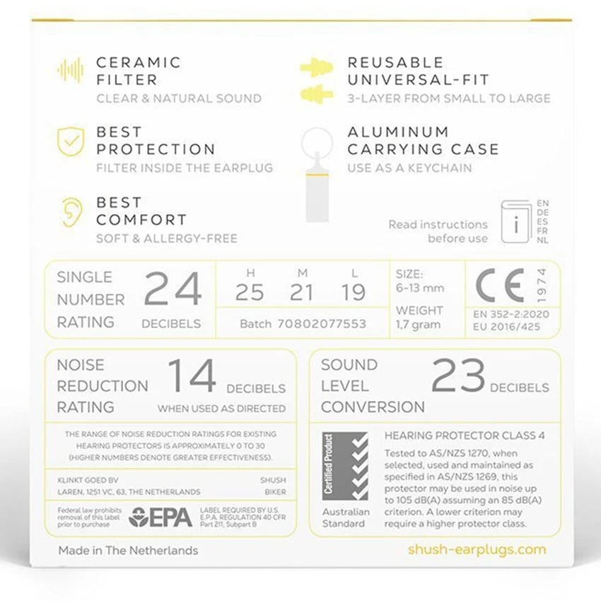 It is all about protecting your ears while still allowing you to hear everything clear and natural! The Sush Biker earplugs have a universal-fit design with a three-layer mushroom shape from small to large, making these the perfect hearing protection for every motorcyclist. The Sush earplugs have a ceramic filter with a venturi channel (a double funnel) not only ensures reliable attenuation but provides a clear and natural high-fidelity sound. Thanks to the rougher surface on the synthetic rubber these Biker earplugs stay in place. The soft synthetic rubber is hypoallergenic and silicone-free for ultimate comfort.
