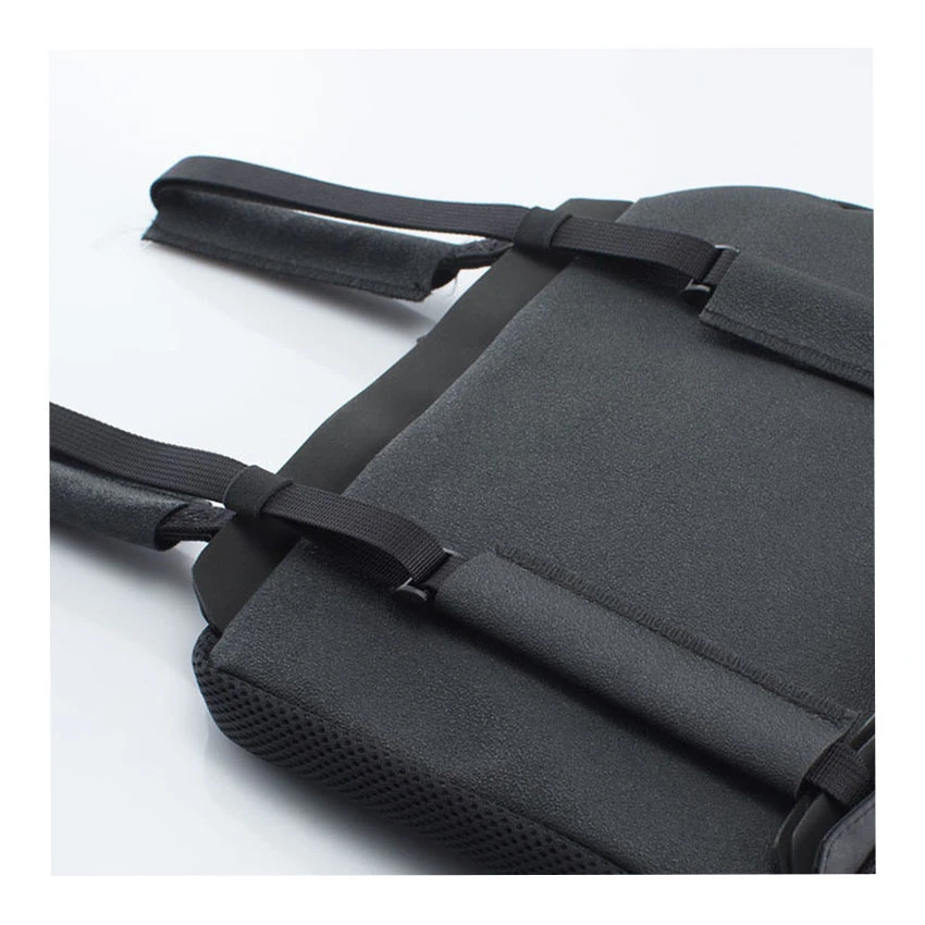 A non-slip underside and retaining straps guarantee secure positioning of the cushion. The bi-elastic, rugged artificial leather surface provides extra sitting comfort. The air volume can be adjusted via an integrated vent for more comfort or a more responsive feel on curvy roads.
