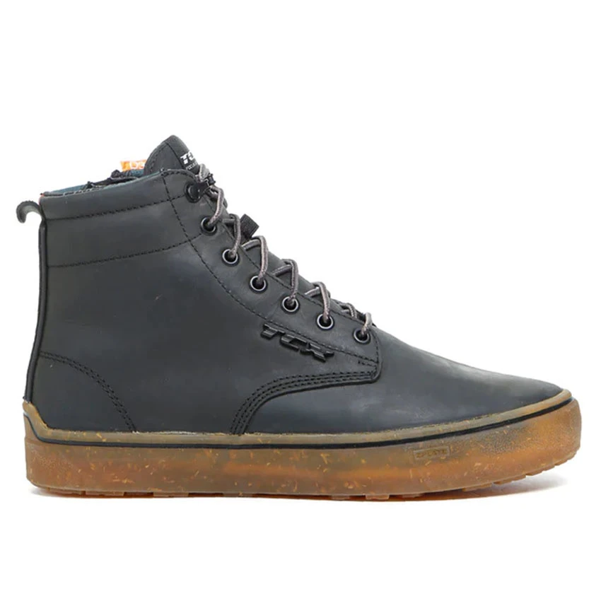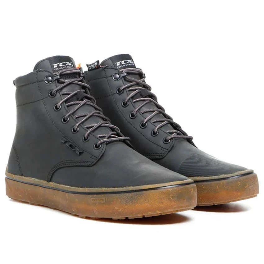 The TCX Dartwood WP is a cool urban motorcycle sneaker with a waterproof membrane so that it can be worn in any type of weather. In addition, this (T-Dry) membrane also ensures that your feet can continue to breathe to avoid sweaty and slippery feet. The full-grain leather exterior provides a luxurious and more traditional look. The toes and heels are reinforced, and on the ankles, you will find D3O protection. The ZPLATE midsole offers flexibility in the front and the abrasion-resistant Groundtrax rubber outsole is designed to provide stability. The Dartwood waterproof is easy to put on thanks to the combination of lace and zipper.