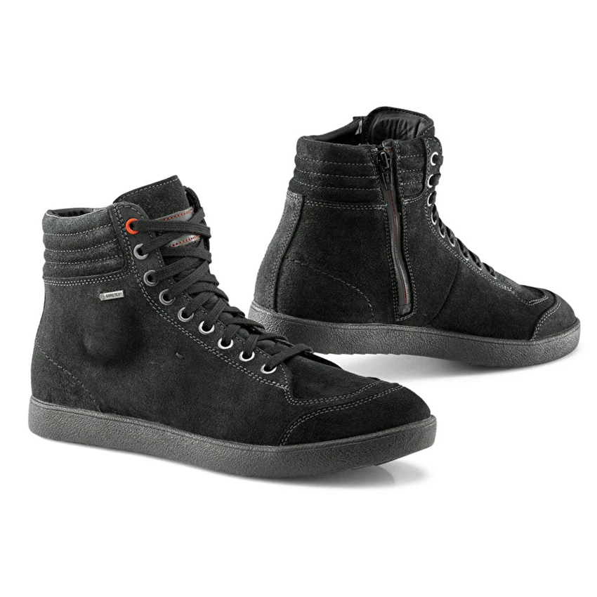 The X-groove GTX mid high casual motorcycle sneaker with the necessary protection. Handy side zipper for easy entry and lacing for the perfect fit. With a gore-tex waterproof and breathable membrane and a premium non-slip rubber sole.
