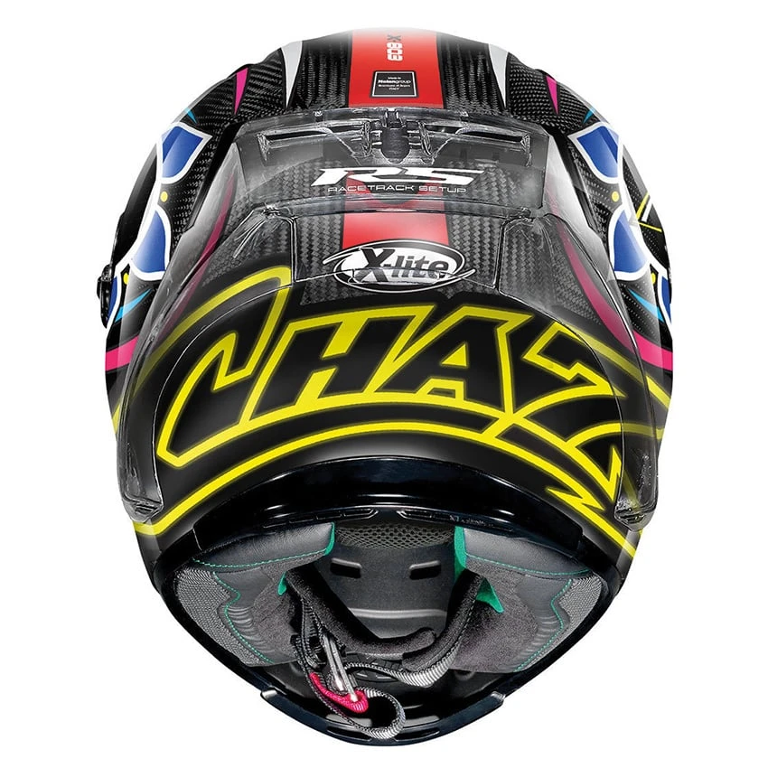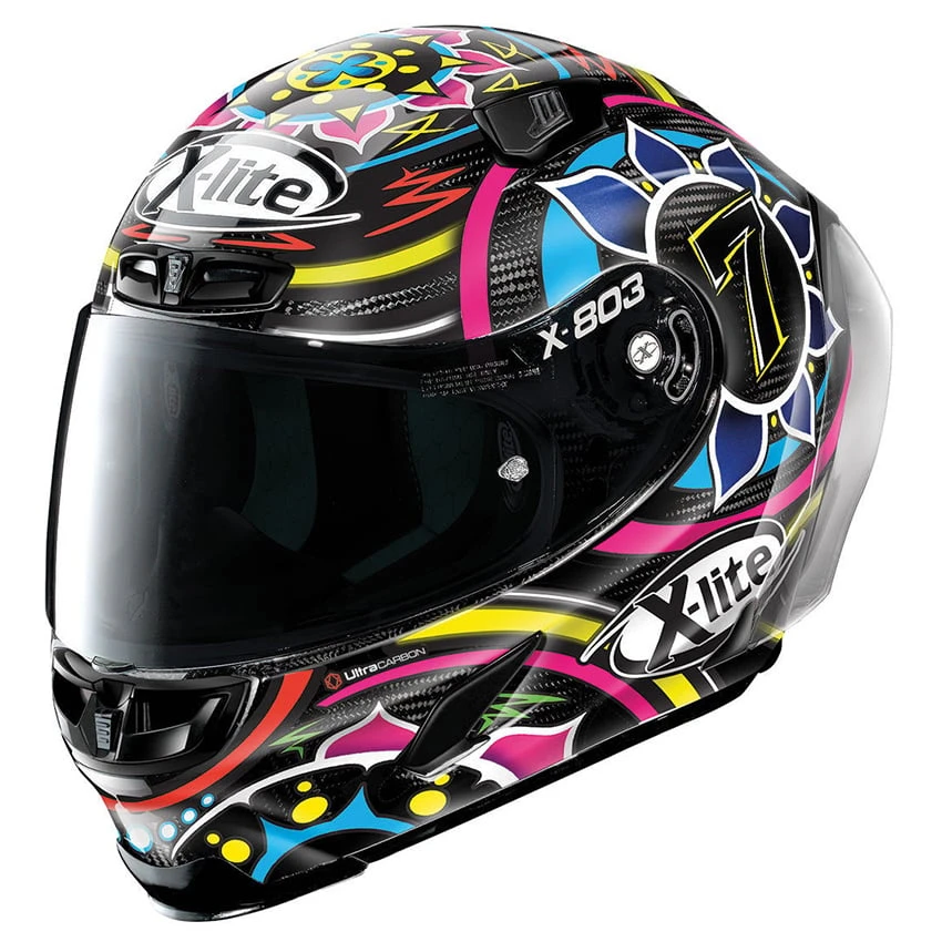 The completely new developed successor of the popular X-802RR scores with numerous improvements – these range from extensively optimized aerodynamics and ventilation over a further extended field of vision to a clear plus in wearing comfort. In addition, the X-803 offers the new Nolan Emergency Release System (NERS) for more safety by quickly removing the cheek pads in the event of a fall. The X-803’s interior is made of the high-tech carbon fibre Carbon Fitting Racing Experience for the best riding comfort and a pleasant fresh feeling in the helmet at all times. The standard version of the X-803 with its record-breakingly low values on the scales is equipped with an outer shell made of “Composite Fibre”.